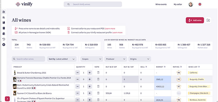 Vinify er også integrert med Liv-ex for å se internasjonal markedsverdi på vinene i kjelleren din.
